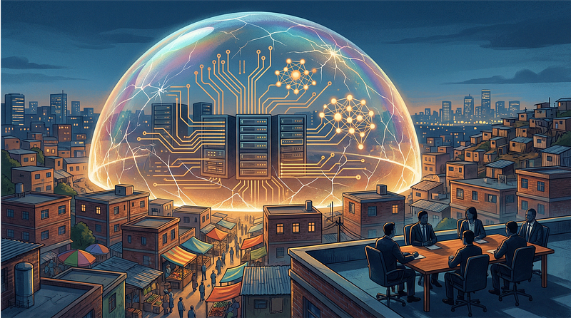 Igualmente preocupante é o silêncio sobre os riscos da bolha financeira de IA. O documento ignora completamente as consequências macroeconômicas da atual hiperinflação de valuations no setor. Bilhões de dólares foram investidos em infraestrutura de IA com base em projeções de retorno que ainda não se materializaram. Para economias emergentes que tentam “pular na onda” desse ciclo especulativo — pressionadas por narrativas de que ficar de fora significaria condenação ao atraso — , o risco é especialmente grave. Bolhas tecnológicas anteriores deixaram um rastro de dívidas públicas e privadas em países que apostaram na tecnologia do momento sem avaliação crítica de custo-benefício. A declaração não dedica uma linha sequer a esse risco. Ao apostar em instrumentos voluntários liderados pela própria indústria, o documento vai além do silêncio: implicitamente legitima o modelo de autorregulação das mesmas empresas cujos valuations inflados pressionam governos a subsidiar infraestrutura de IA sem qualquer escrutínio independente.